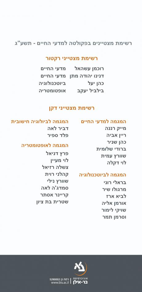 רשימת מצטיינים בפקולטה למדעי החיים - תשע"ג
